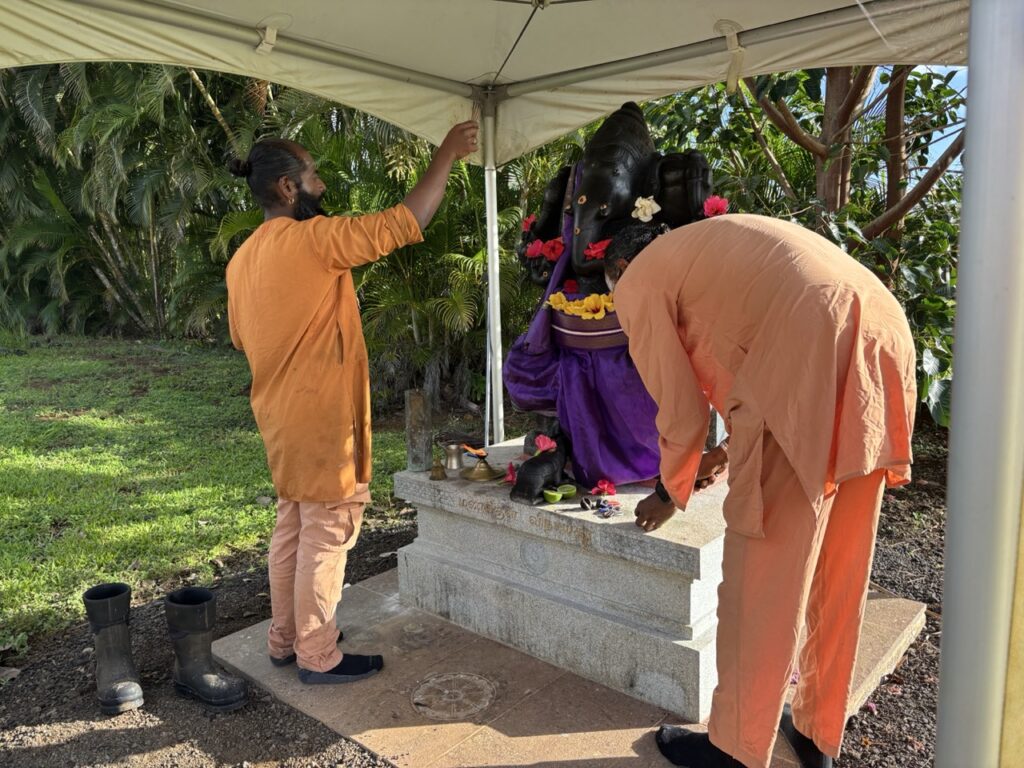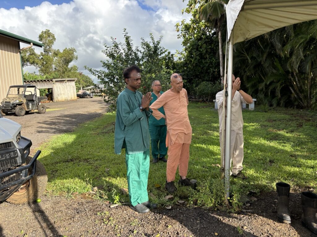 Before any vehicle or large piece of equipment enters service, our monks perform a traditional blessing for it. Last week, the monks of the Siddhidatta Kulam gathered at the large Ganesha outside their office and blessed the vehicles for a long, safe, and productive life of service.
