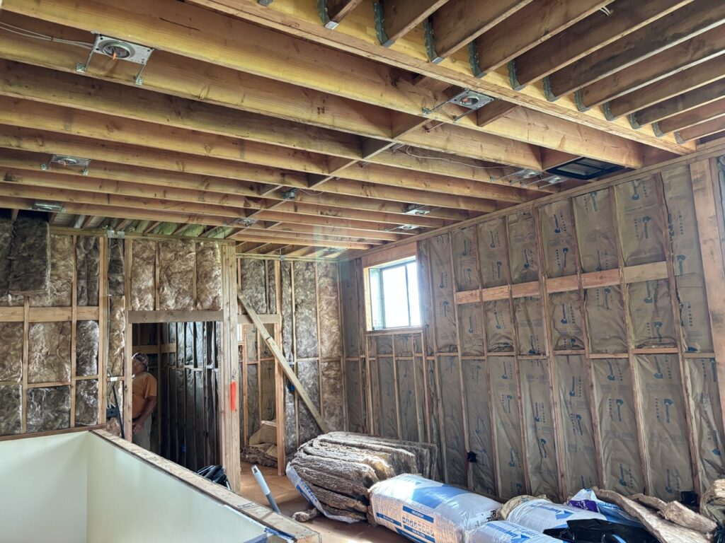 In the new Siddhidata Kulam building office, SSC sishya Easvan Param was just here with a team to install electrical materials for the office and also plan for a solar panel installation on the roof. After he finished, our employees and monks are just finishing installation insulation in all the walls.