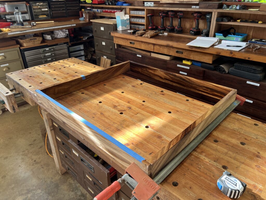 For the past few months, Sannyasin Kumaranathaswami has been guiding Sadhaka Shankaranatha in building a base for the fish tank in Siddhidata Kulam’s new office. Now, the project is nearing its final stage. It needs a few more rounds of sanding and a coat of oil before it is ready to be installed. Sadhaka has learned a lot from Kumaranathaswami about woodworking and is eager to apply this knowledge in his upcoming projects.