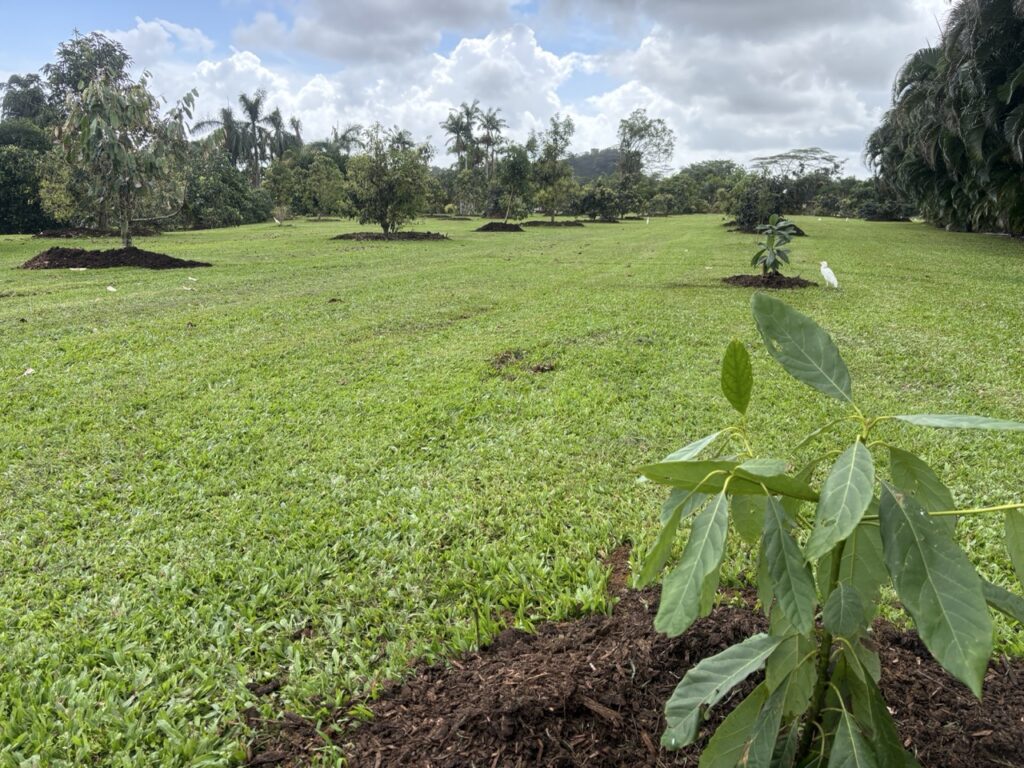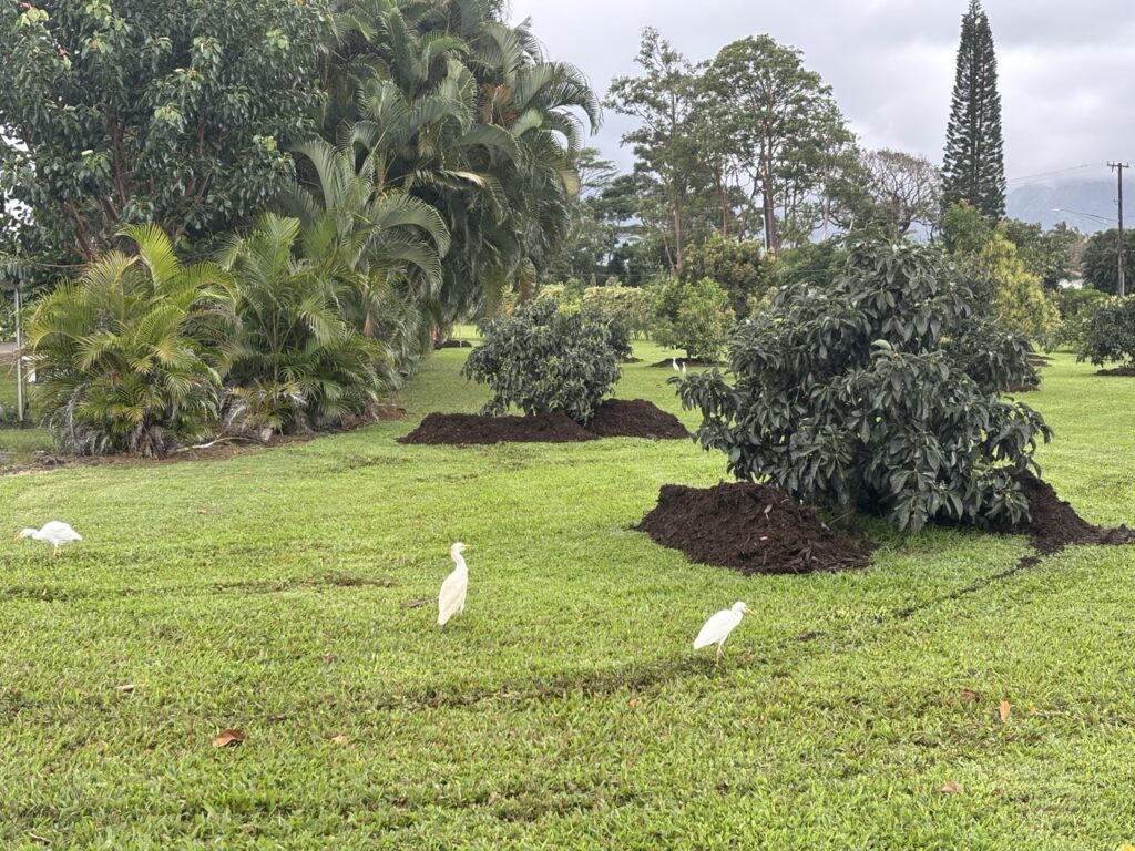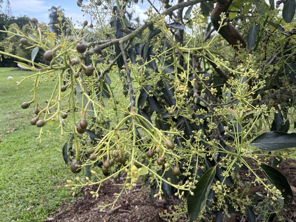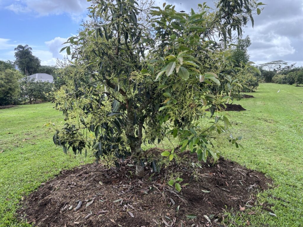 Many of the avocado trees are putting out blossoms and tiny fruits right now, so this is the time to add more mulch.