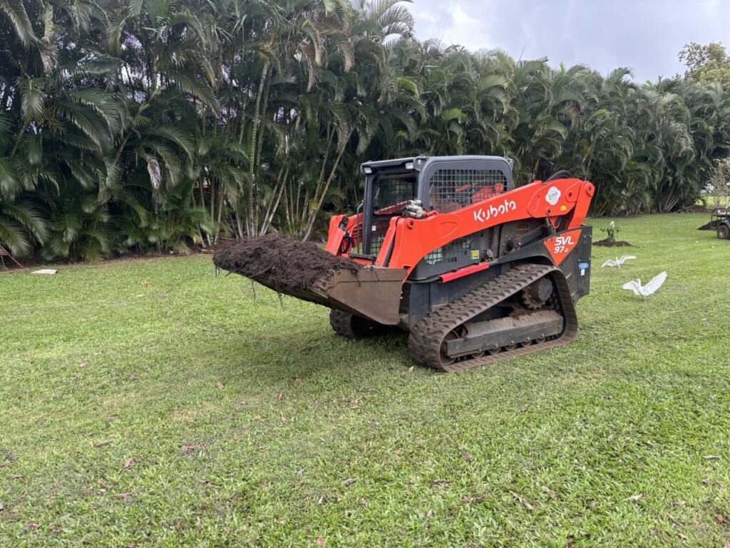 Though time consuming to apply, our avocado and other fruit trees respond well to mulching, so the Siddhidata Kulam is carving out time to replenish the mulch layer around them more frequently. This is partly possible due to a large amount of material being regularly delivered by tree trimmer companies when they work in our area. We are very thankful for this.