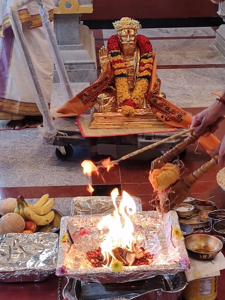 For many years a small shrine in the basement of the Concord Siva Muruga Temple held Gurudeva’s photo, honoring the founder. Now that the temple has been completely rebuilt, a more formal space has been designed for this, and devotees worked to have a sculptor in India make a proper bronze murti, which was then gold plated.