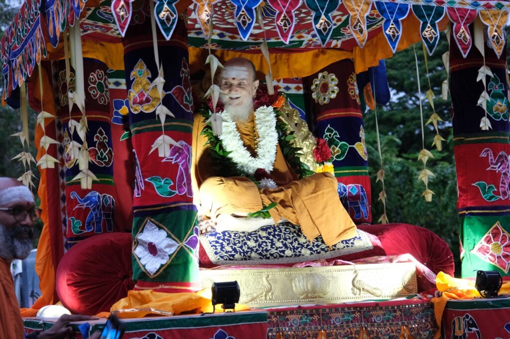 Besides the livestream from this morning, here is a selection of photos which also show the chariot parade out to Iraivan Temple, and the planting of a bilva tree sapling next to Iraivan Temple right after the padapuja. And, the final photo shows Nandi receiving yogurt abhishekam during Pradosha Puja the prior afternoon.