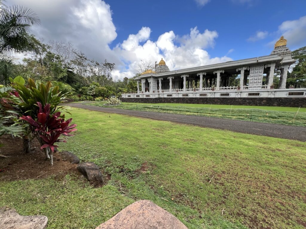 Today we explored around Iraivan Temple, and while doing so, we noticed that the previously muddy areas are now filled with grass. Our hired workers have been seeding and watering them every day, and now the grass is growing faster, filling in the gaps and making the area look beautiful. As you can see in the picture, there are still a few parts that need some work, so the team will be focusing on those areas soon. Aum.