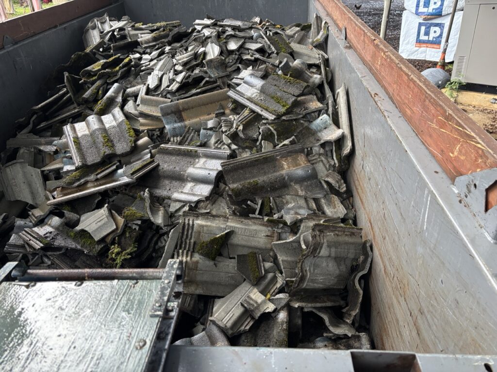 Yesterday was the first day of work for the contracted team. The first photo shows how much tile they have removed from one side (under the blue tarp). The job is estimated to last a couple weeks or longer, pending discovery of needed repairs or weather issues. Just today, it rained a fair amount (needed by plants after a dry spell), so the workers can only resume when that stops.