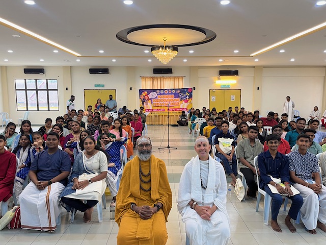 Day four morning was spent at the Kuil Sri Maha Mariamman Temple in Klang, where Yoginathaswami gave the first “Path to Siva Workshop” for 90 youth aged 16 to 22. He discussed Karma, Reincarnation, the three perfections of Siva, the three worlds, the mind, and the importance of Ahimsa. A key practice shared was Vasana Daha Tantra. Three videos were viewed about the monastery/monastic life, and one short video highlighted the Spiritual Workout app. The workshop concluded with a focus on daily sadhana.