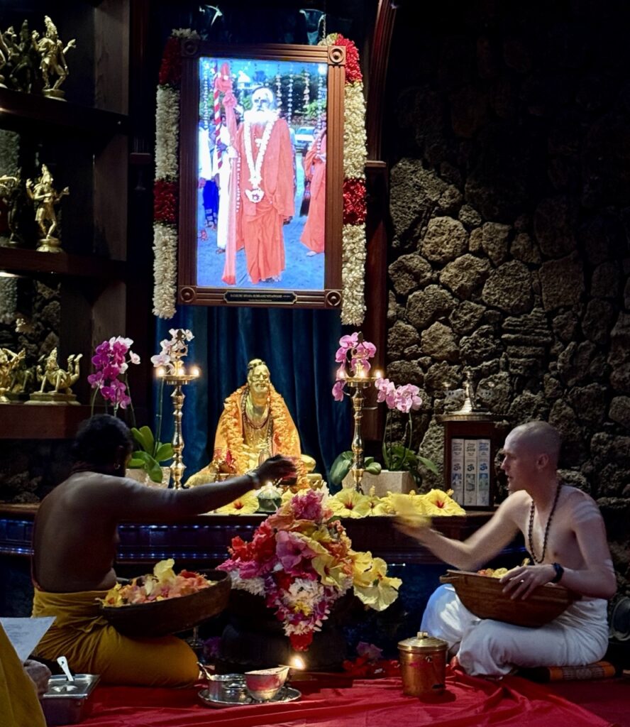 As many of you know, the monks have been (and continue) working on a new book, an English edition of the 1,454 songs of Saint Tayumanavar, the Tamil poet and philosopher who lived from 1705 to 1742. His songs to Siva are revered in South India and memorized by children in annual competitions. Imagine, learning so many songs by heart.