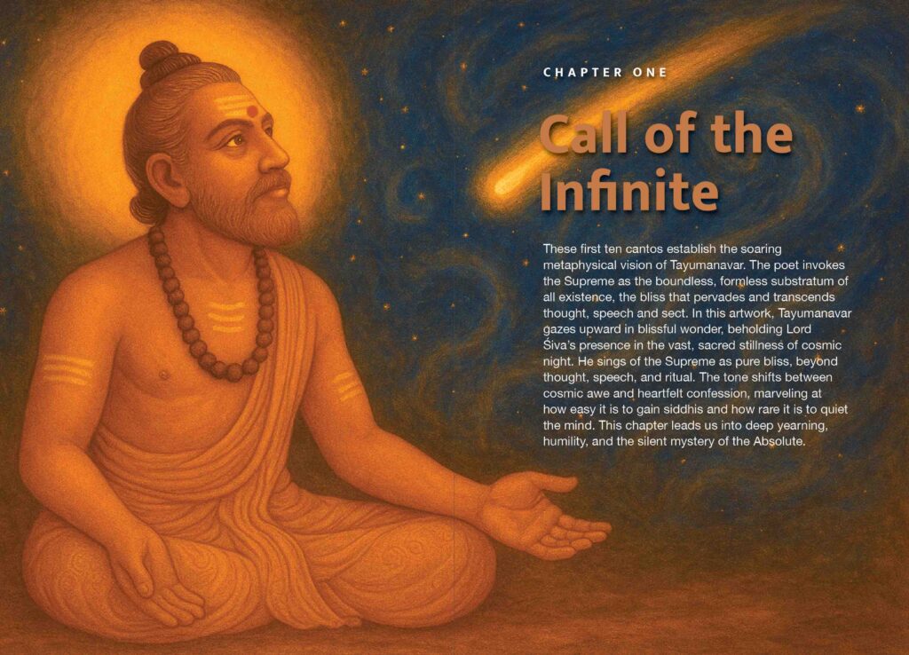 It is perfectly quiet, perfectly still. A ringing silence fills the air and can be heard by those inwardly attuned, a sound as of a thousand vinas playing in the distance, a sound divine, the sound, some say, of the workings of the subtle nervous system, or, others claim, the sound of consciousness itself coursing through the mind, the sound that binds guru to disciple through the ages. It is a sound that many visitors have never heard till now, and it fills them with an inexpressible and familiar joy.