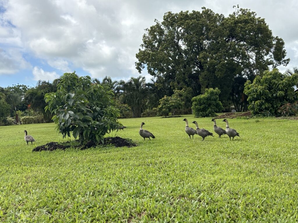 A group of Nene geese also decided to visit the nearby avocado orchard this morning.