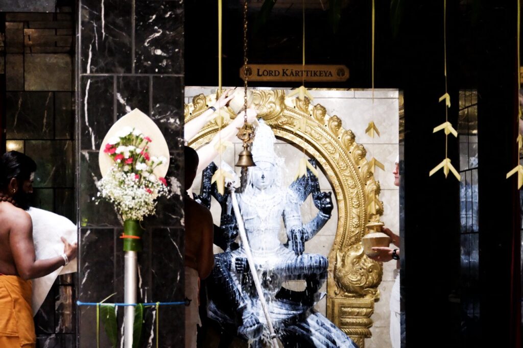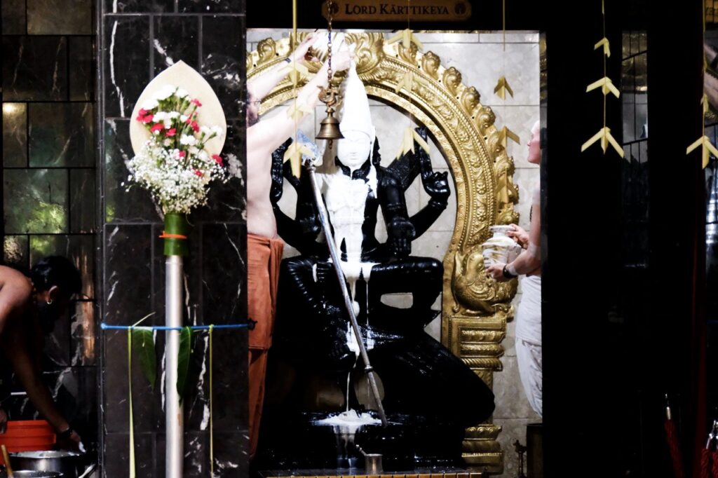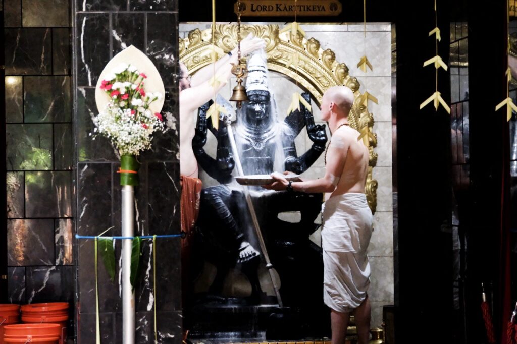 On February 10th, Mathavasis and devotees celebrated Thaipusam at Kadavul Temple in the presence of Satguru Bodhinatha Veylanswami. The event began at 3:00 PM and concluded at 5:30 PM. We started with an abhishekam, performed by Sannyasin Siddhanathaswami, of milk, yogurt, orange juice, panchamritam, honey, sandalwood water, vibuthi, chandanam and rose water. After completing the abhishekam, we performed the alankaram—dressing the Deity, which took about 30 minutes. Once the alankaram was finished, we continued the puja. Yoginathaswami sang Lord Muruga’s songs and the monks concluded with a final arati. A fun fact: Lord Muruga is considered the first and foremost renunciate—which is why this day holds great significance for us Mathavasis. Aum.
