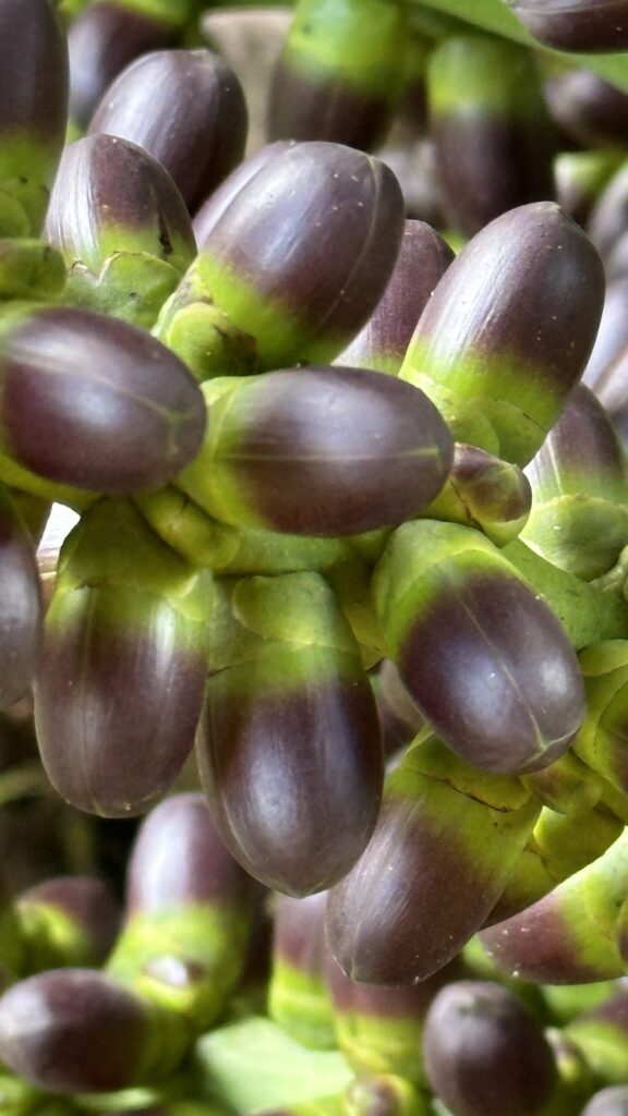The garden changes day to day, hour to hour, it is never the same. Walk along the paths today and it won’t be like it was last month. This is the garden now, October 12, 2024. Did you know that plants can communicate with each other and with insects through chemical signals. When under attack by pests, some plants release volatile organic compounds into the air. These signals can warn neighboring plants to preemptively strengthen their own defenses and can also attract the predators of the pests attacking them, effectively calling for backup. And there is this: Some plants exhibit incredible adaptability to extreme environments. For instance, Welwitschia mirabilis, found in the Namib Desert, survives with only the moisture from fog and dew; it can live for over a thousand years in one of the harshest environments on Earth.