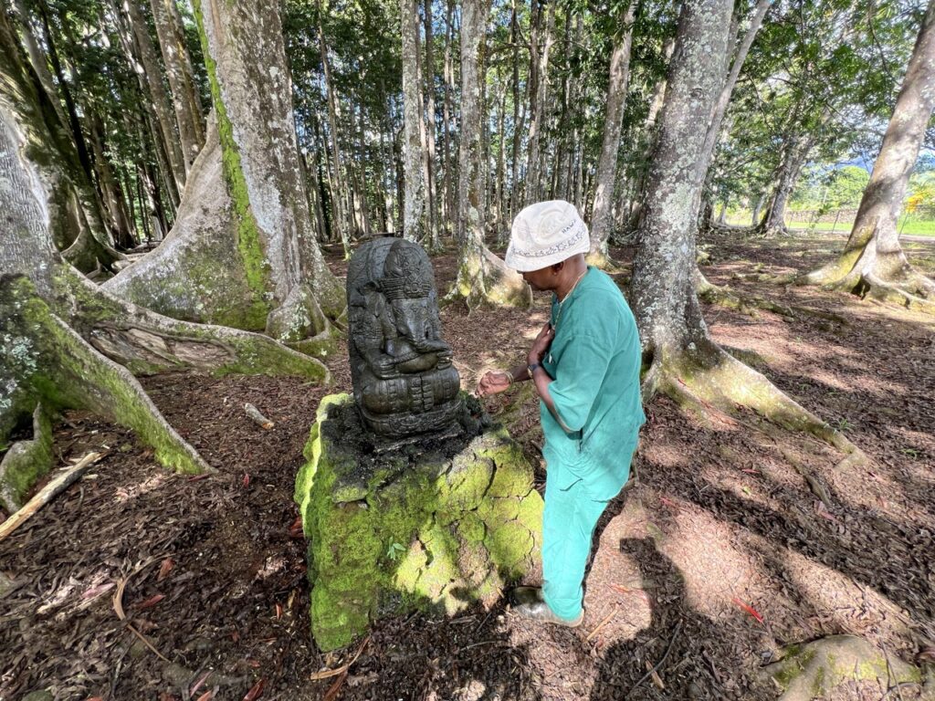 Iraivan Day is a day each month that the whole monastery devotes to work related to Iraivan Temple and the San Marga Sanctuary. First thing in the morning, we all gather around in the Guru Pitham and prepare the month’s paper newsletters to be mailed to devotees. Once done with that each monk and taskforcer is assigned to do another task, by Yogi Haranandinatha. Here is a look into what Vel was doing for his Iraivan Day. He began by cleaning the Rudraksha Forest Ganesha which hadn’t been cleaned for quite a long time. Vel was very thorough, and Ganesha is now looking very neat and clean. Once done with that, he went to Murugan hill and cleaned the area around the granite Vel in top of Muruga Hill. Once finished, Vel took the Nataraja statue from the Saivite Satguru Path and washed and shined it well. It also hadn’t been touched for a very long time. As you can see, Vel took his tasks seriously and gave 100% effort. Aum!