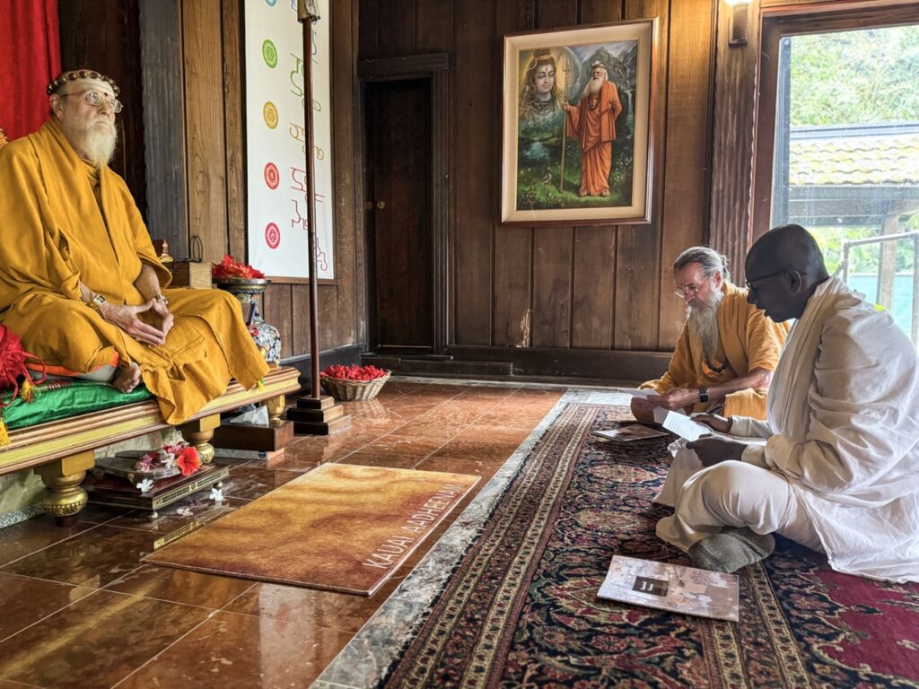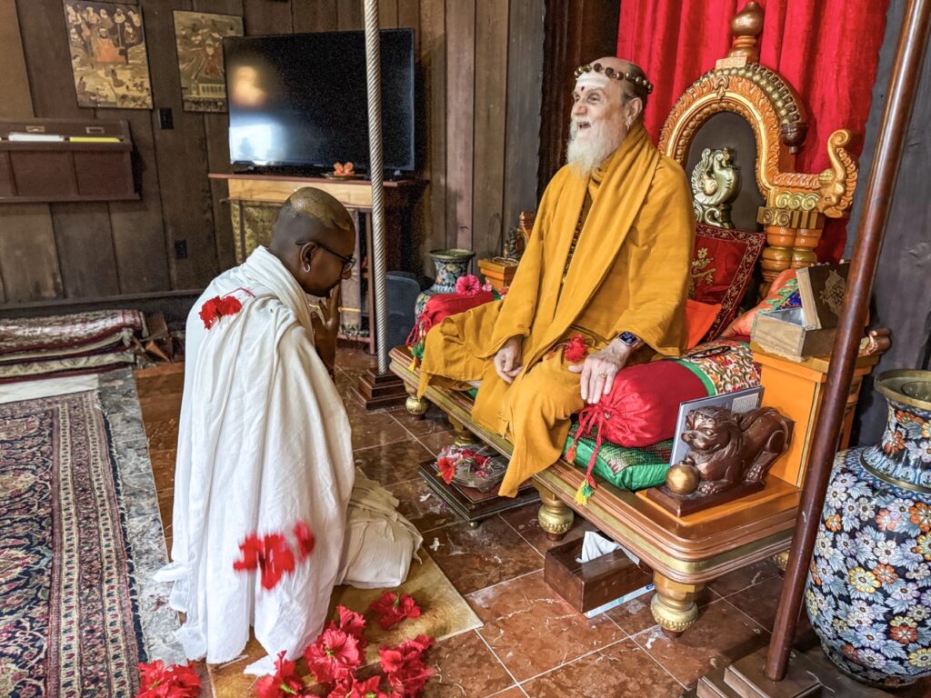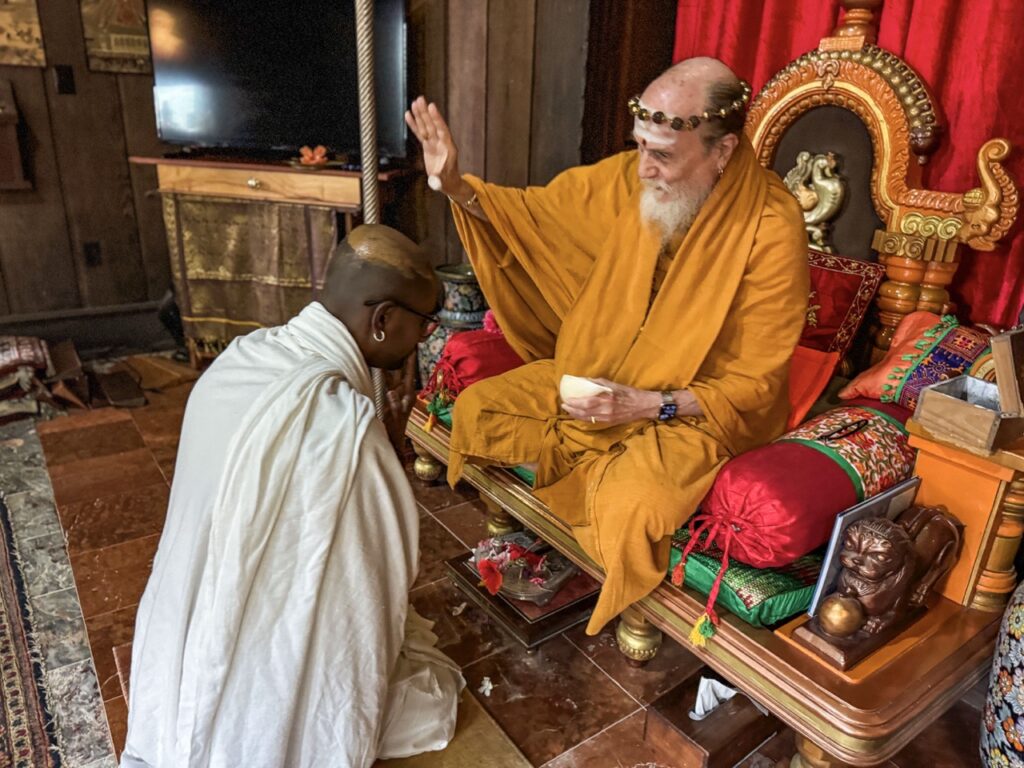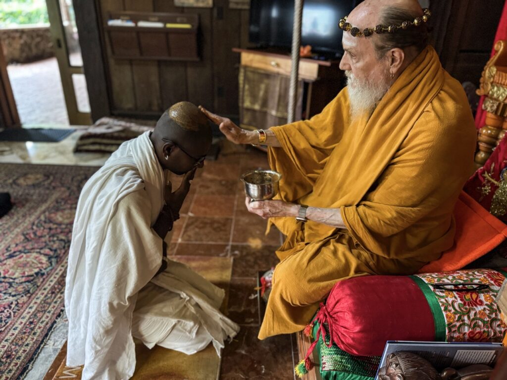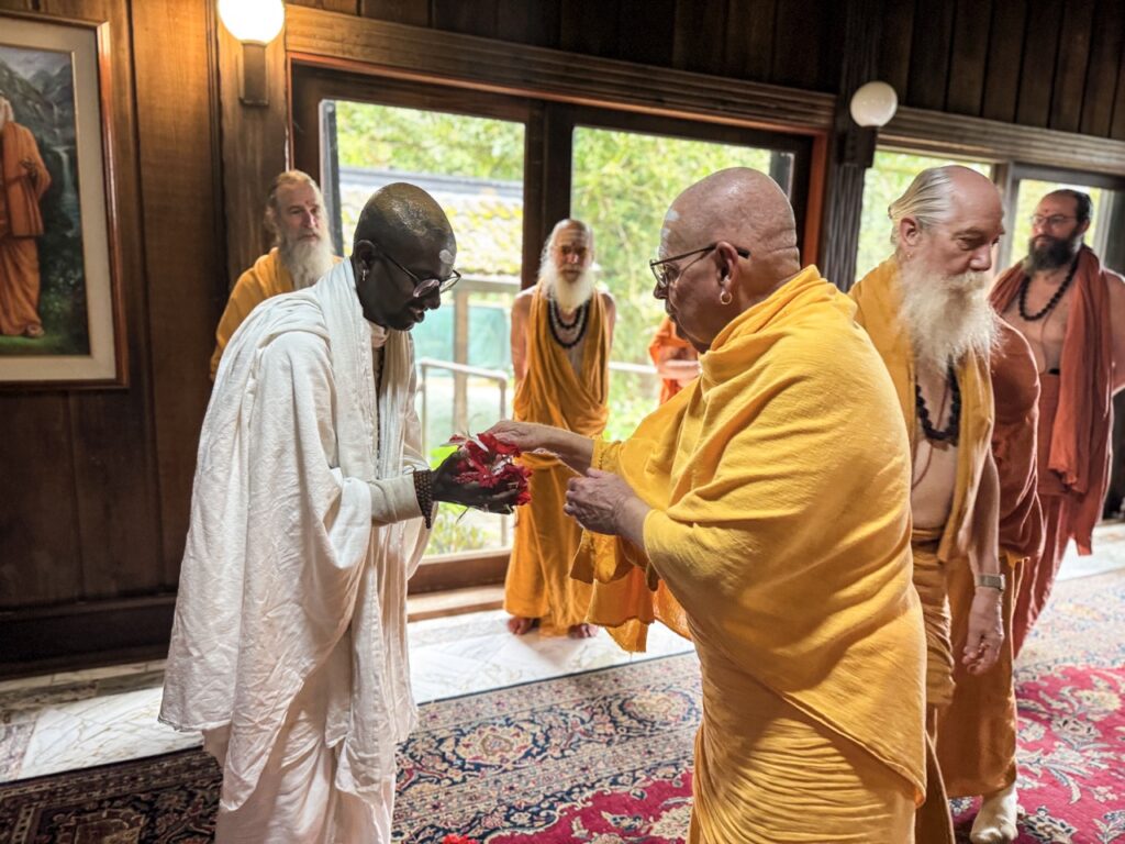 After six months in the Supplicancy program and several months sitting by the wall, begging entrance to the monastery, Sadhaka Sabanatha passed his review by the senior monks and has been accepted as a full monastic into Kauai Aadheenam. Today the monks gathered to witness his vow taking. Through this process he becomes a Postulant. His title is now Sadhaka Sabanatha. This is always a joyous occasion for the new monastic and a great day for the monastic order. Aum Namah Sivaya.
