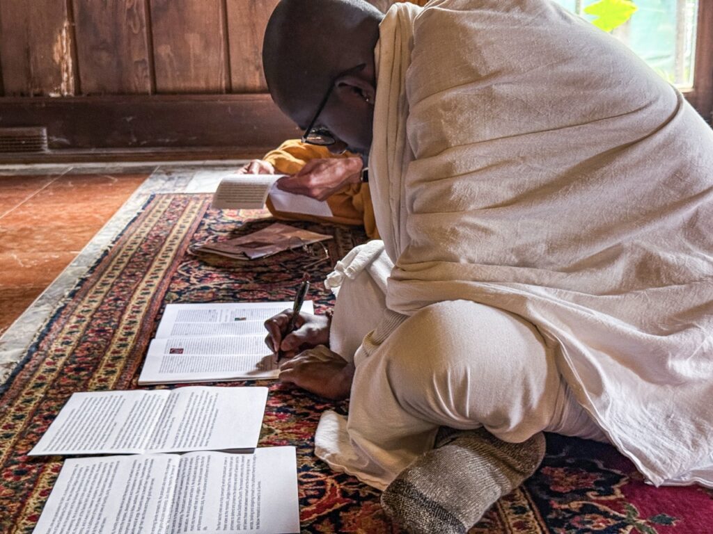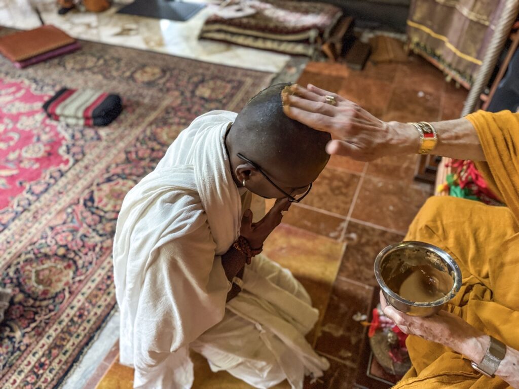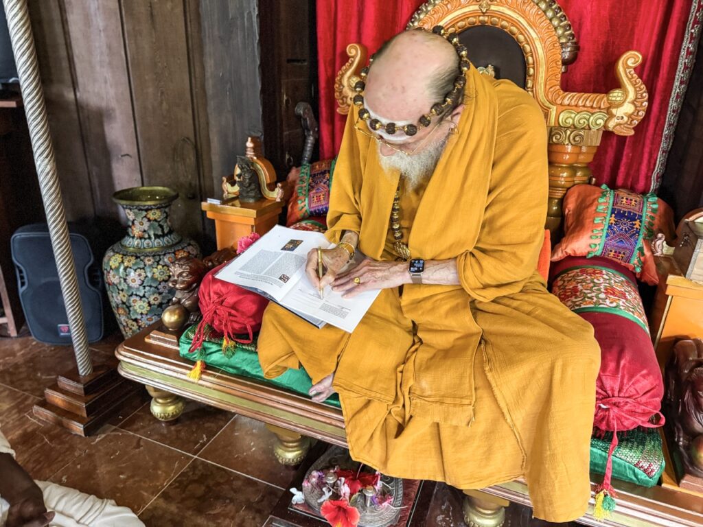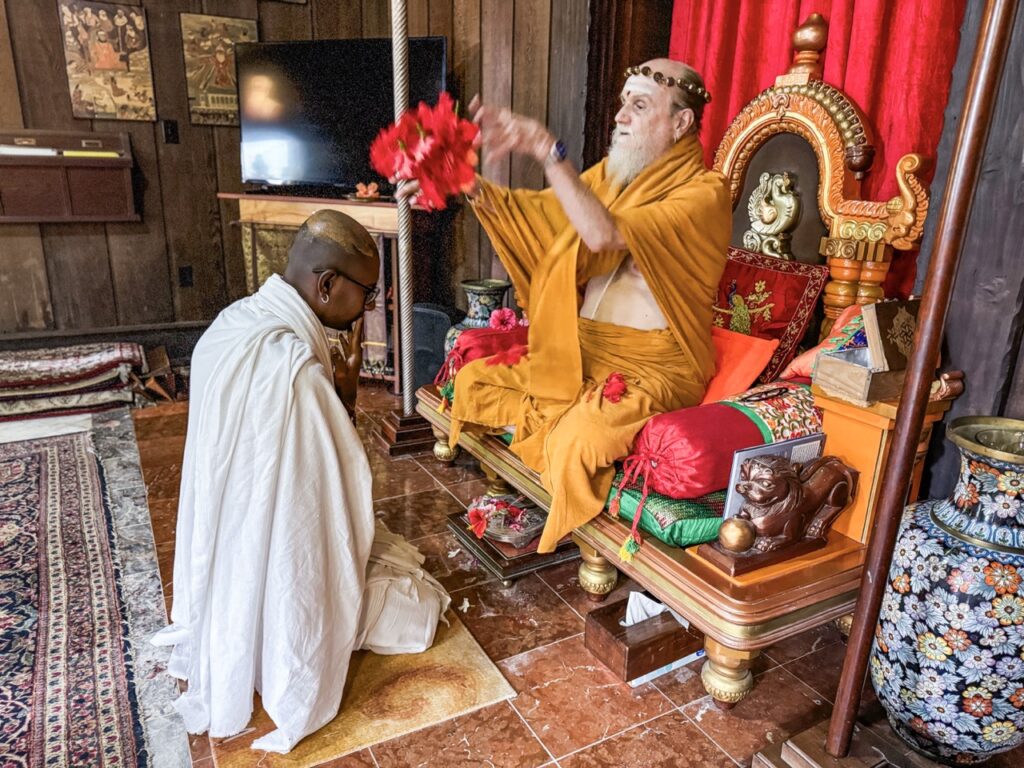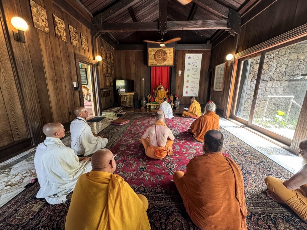 After six months in the Supplicancy program and several months sitting by the wall, begging entrance to the monastery, Sadhaka Sabanatha passed his review by the senior monks and has been accepted as a full monastic into Kauai Aadheenam. Today the monks gathered to witness his vow taking. Through this process he becomes a Postulant. His title is now Sadhaka Sabanatha. This is always a joyous occasion for the new monastic and a great day for the monastic order. Aum Namah Sivaya.