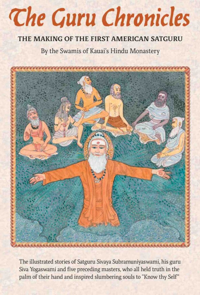 Today we explore Tayumanavar a bit more, the 16th century Saivite poet and mystic who authored the book the Ganapati Kulam is working on intensely and which contains his 1,454 songs. For those unfamiliar, when Yogaswami was a boy he learned by heart many Saivite hymns, including those of Tayumanavar. The saint’s deep understanding of the core truths shared by Vedanta and Siddhanta resonated with him throughout his life. And below we share one time he sang such a song for a senior devotee. The slideshow shows artist S. Rajam’s take on the meeting of Gurudeva and Yogaswami and also a couple of the works of art that ChatGPT and the monks are working on for the book.